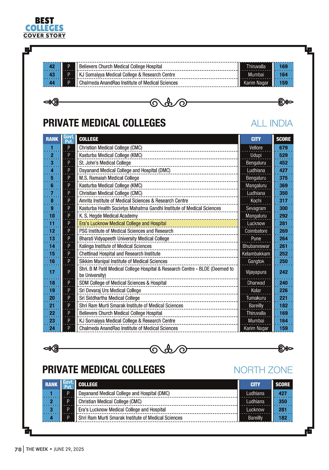 Ranked 11th Among All Private Medical Colleges in India (THE WEEK 2025)