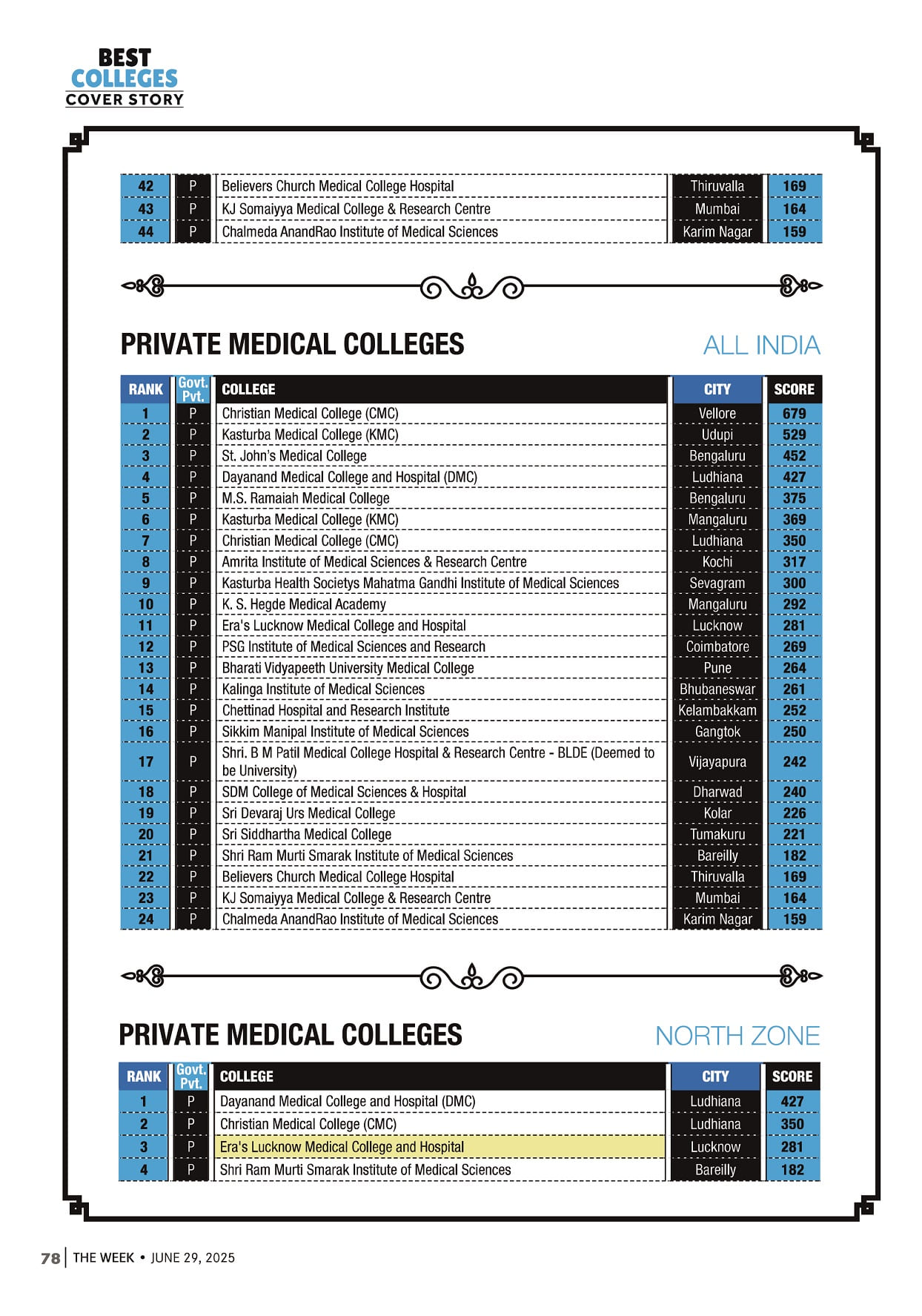 Ranked 10th Among All Private Medical Colleges in India(THE WEEK 2024)